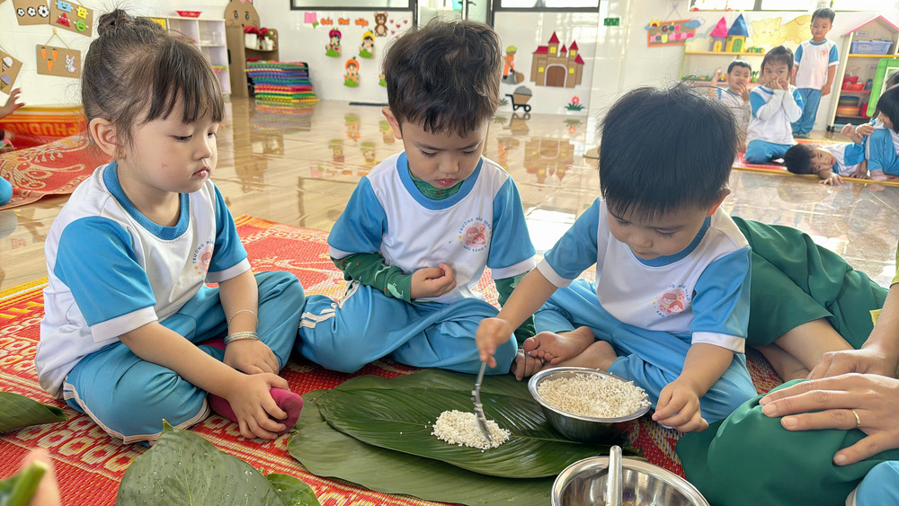 🎋 Hoạt động trải nghiệm: Gói bánh chưng – Trường Mầm non Sao Sáng 2 🎋