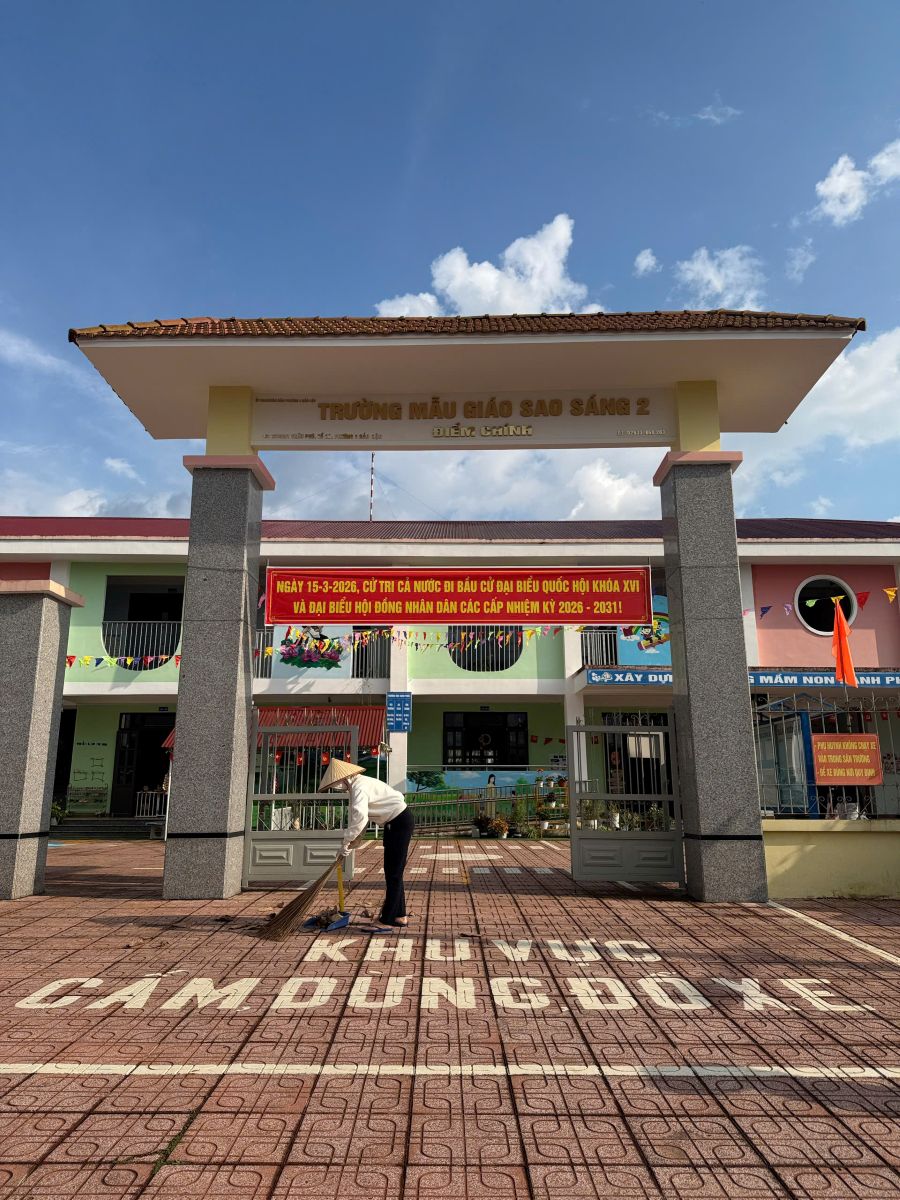 Thực hiện các hoạt động hưởng ứng cuộc bầu cử đại biểu Quốc hội khóa XVI và đại biểu Hội đồng nhân dân các cấp nhiệm kỳ 2026 - 2031, ngày 05/3/2026 trường MG Sao Sáng 2 tổ chức cho CB, GV, NV và học sinh lao động vệ sinh, tôn tạo cảnh quan sư phạm nhà trường xanh - sạch - đẹp.