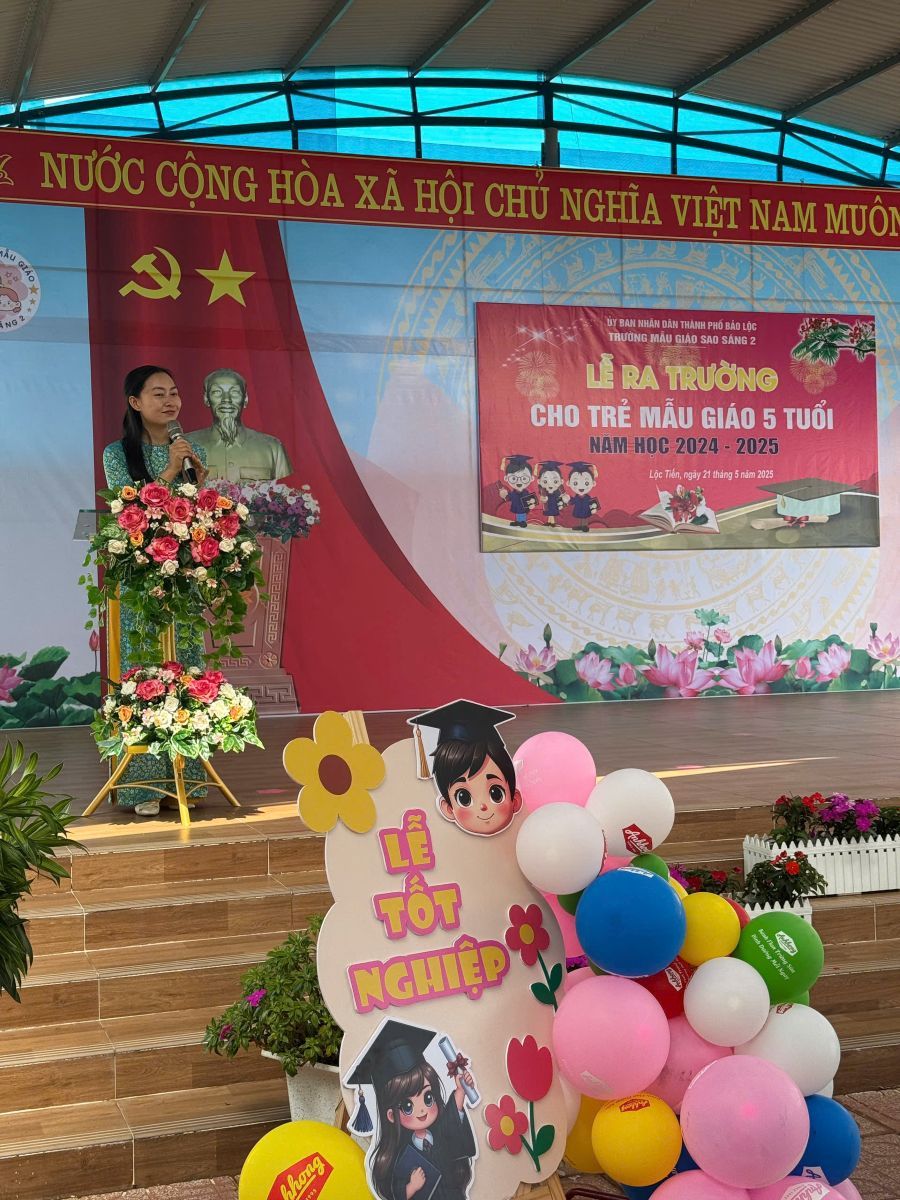 Sáng ngày 21/05/2025 Trường MG Sao Sáng 2 tổ chức "Lễ ra trường cho các bé 5 tuổi" – Dấu mốc đầu đời đầy yêu thương và tự hào. Một hành trình khép lại để mở ra cánh cửa mới với bao hy vọng. Chương trình thêm phần trọn vẹn với hoạt động ẩm thực vui nhộn, trong không khí rộn ràng và ấm áp kết thúc 1 năm học. Thương chúc tất cả các con một mùa hè thật vui và ý nghĩa.