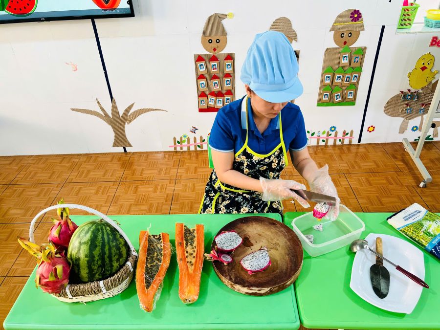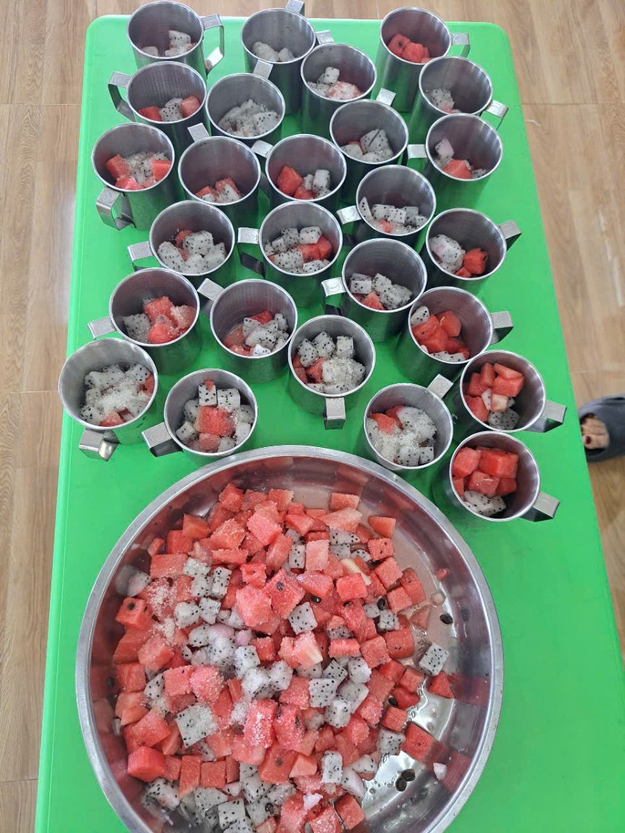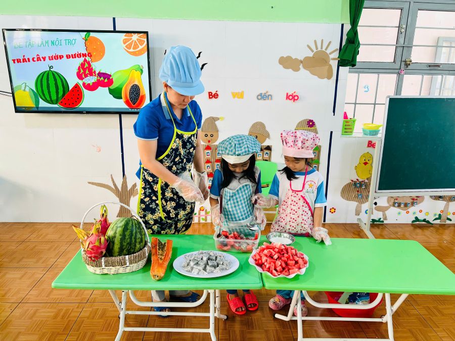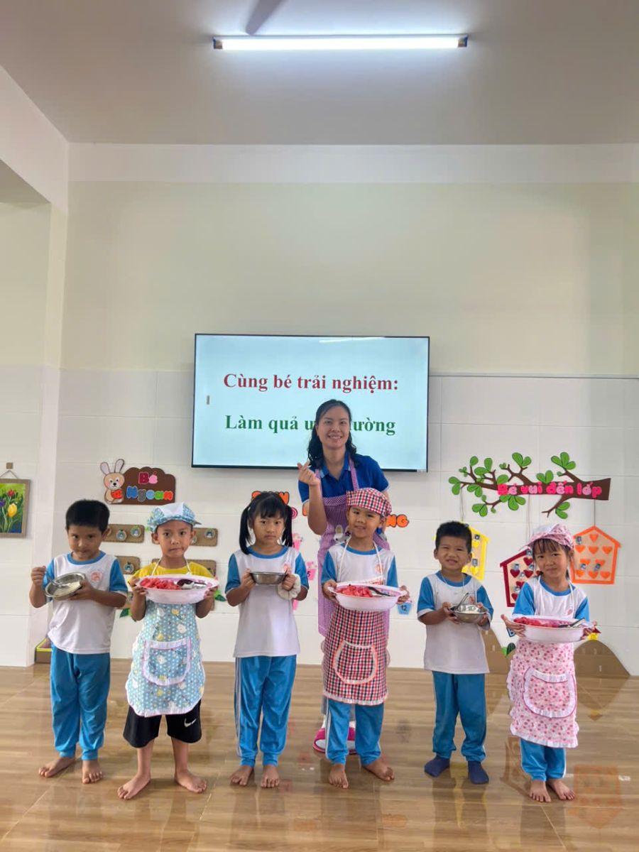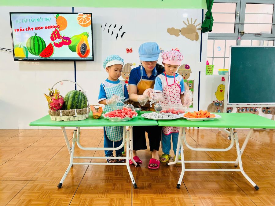 Hôm nay, các bé 5 tuổi đã có một buổi học thật thú vị khi cùng nhau làm trái cây ướp đường! ✨ Vừa học, vừa chơi, lại còn được thưởng thức những miếng trái cây thơm ngon do chính tay mình làm. 🍍🍉