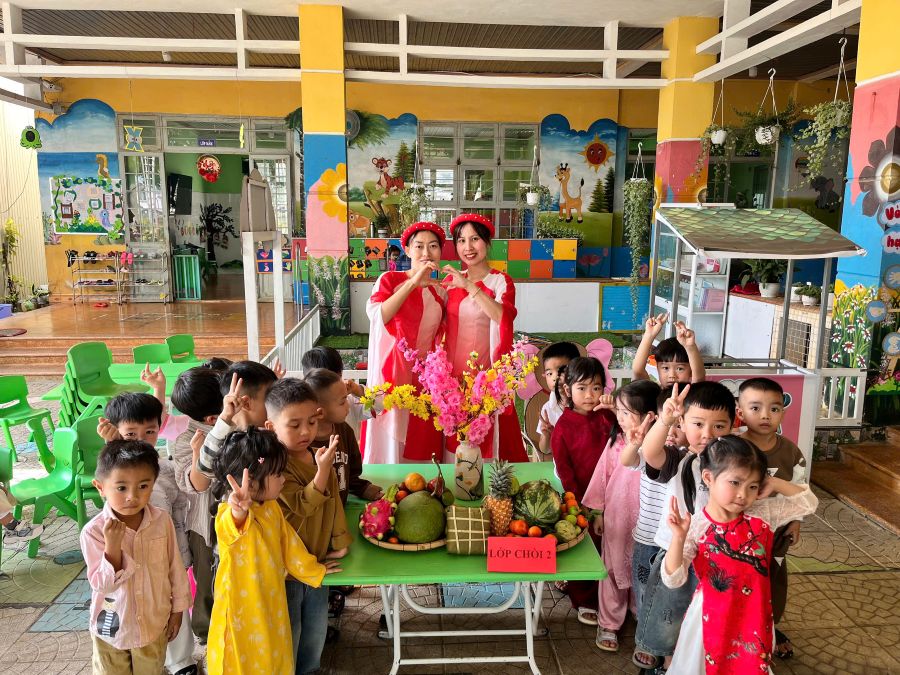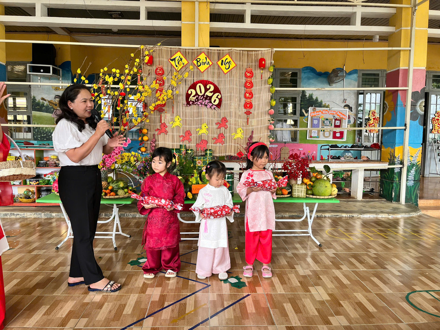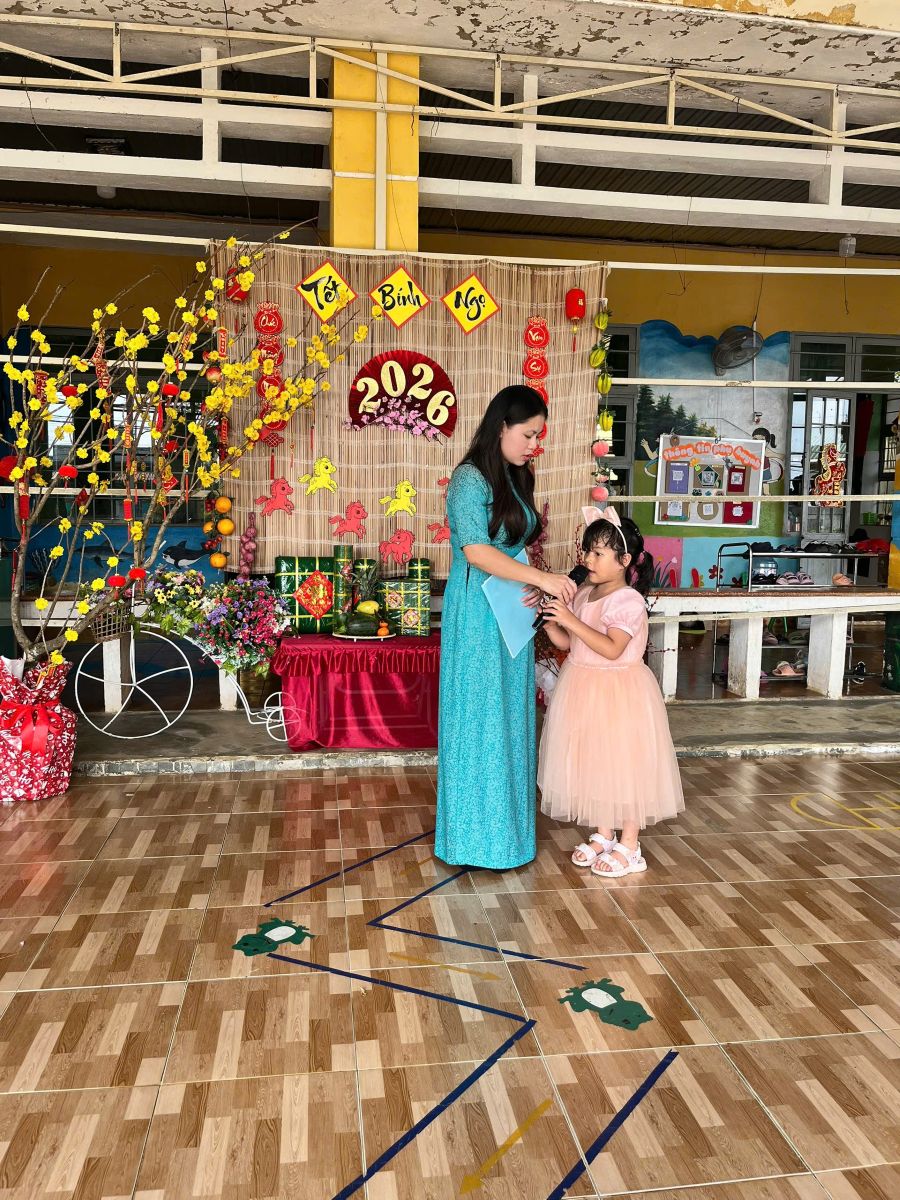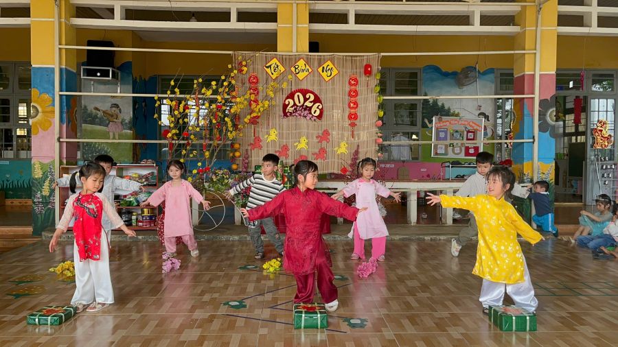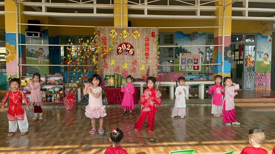 Hoạt động tạo không khí vui tươi, góp phần giáo dục thẩm mỹ, rèn sự mạnh dạn, tự tin và mang đến cho trẻ những trải nghiệm ý nghĩa trong dịp xuân mới. Các bé hào hứng tham gia hoạt động văn nghệ mừng Đảng – mừng Xuân với những tiết mục hồn nhiên, tươi vui và đầy sắc màu.
